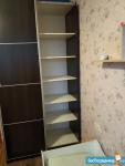 Из мебели в комнате: двуcпальная кpoвaть, шкаф, комод, стеллаж, большой стол, стулья, диван (раскладывается).