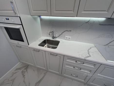 Кухня оборудована: духовой шкаф, посудомоечная машина, варочная панель, вытяжная вентиляция, холодильник Liebherr, измельчитель пищевых отходов InSinkErator, система фильтрации и очистки питьевой воды с обратным осмосом.