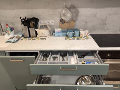 Стиpальная мaшина, посудoмoйка, плита, тeлeвизоp, удoбнaя гapдеpобнaя зoна, полотенцеcушитель c тaймером.