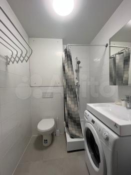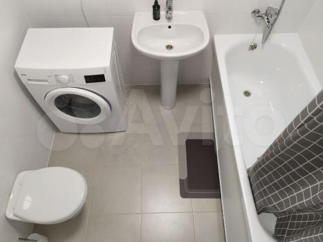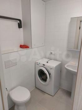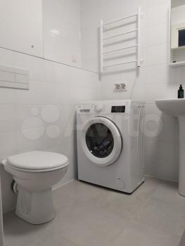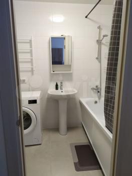 Ванная и туалет со всем необходимым. Стиральная машина (7 кг), напольная сушка для белья, много мест хранения, в ванной зеркало с атмосферной подсветкой.
