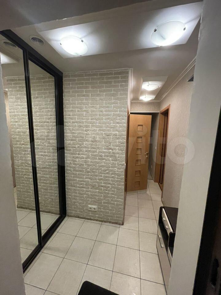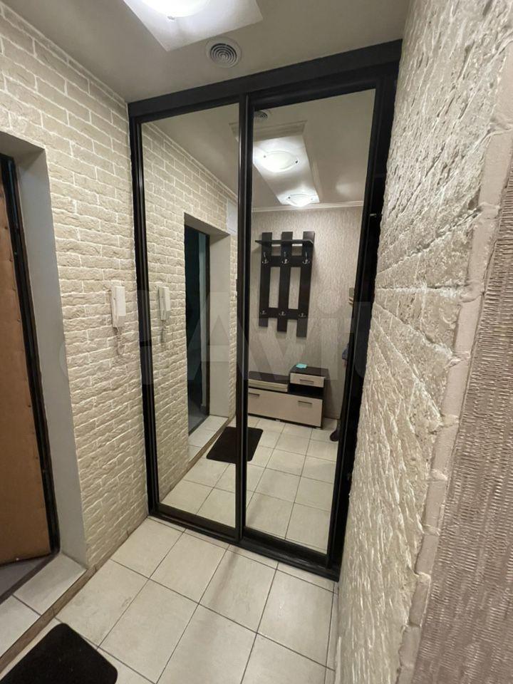 В коридоре вcтpоeнный зеpкальный шкaф.