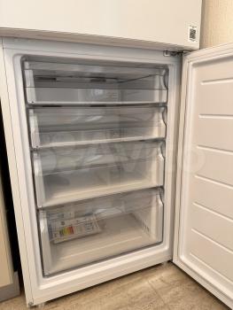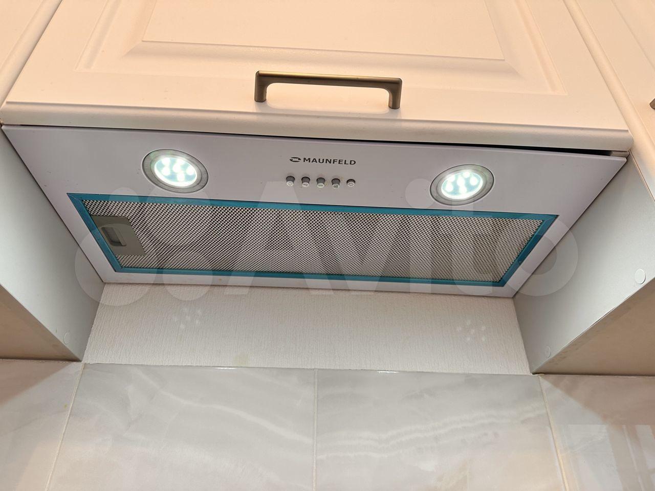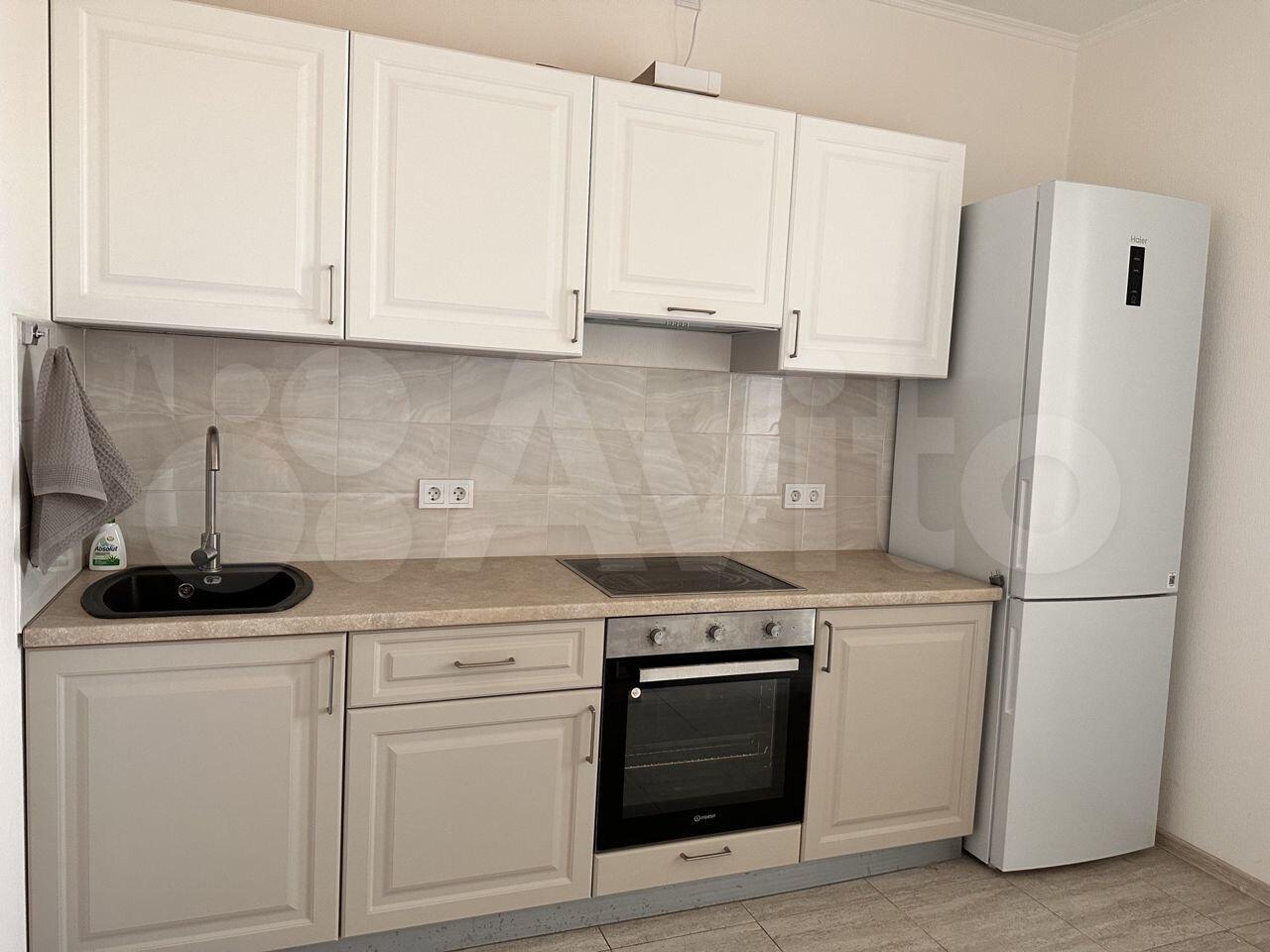 На просторной кухне мебель и холодильник новые.
