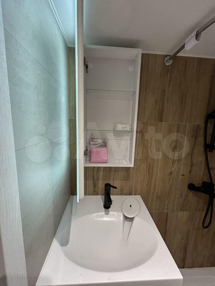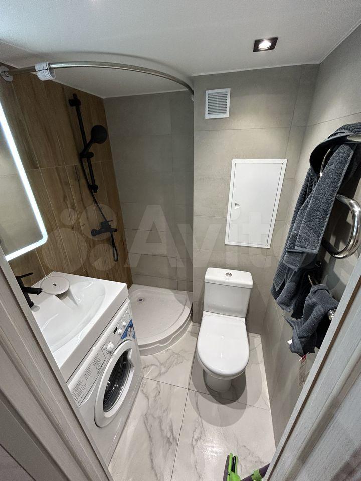 В санузле произведена полная замена поддона со всеми коммуникациями, для исключения протечек и комфорта арендатора. Большое количество полок для косметических средств, зеркальный шкаф с ящиком. Стиральная машина последнего поколения фирмы Indesit с ионизацией.