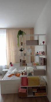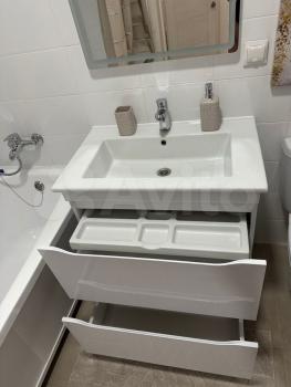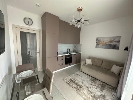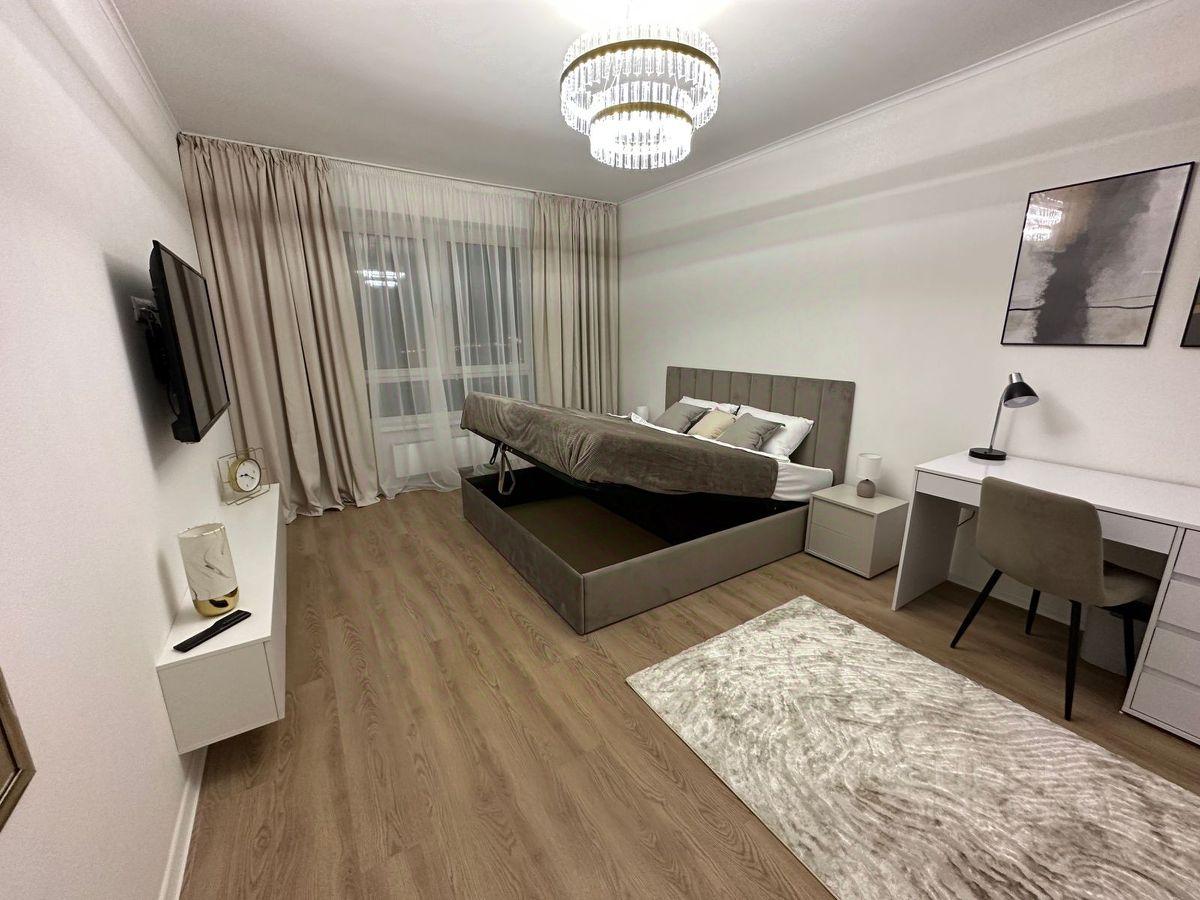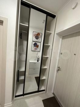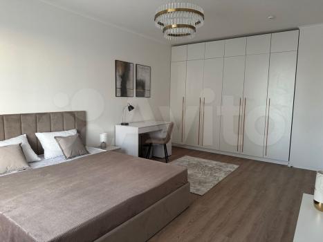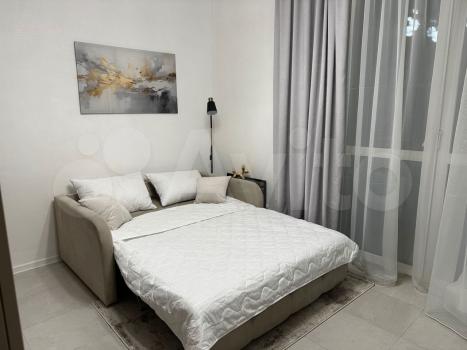 Квартира меблирована двумя вместительными встроенными шкафами, письменным столом с ящиками для работы, двуспальной кроватью размером 180х200 с матрасом и подъемным механизмом, обувницей, прикроватными тумбочками, двуспальным диваном-кроватью размером 160х200 с ящиком для белья, кухонным столом с комплектом из 4 стульев. Гостиная и спальная изолированные с отдельными дверями.