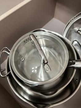 Дополнительно имеется: столовый и чайный сервизы, набор столовых приборов и кухонных инструментов для готовки пищи, набор кастрюль и сковорода, фильтр для воды, гладильная доска.