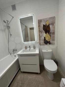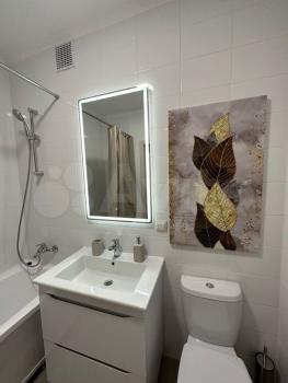Квартира со свежим ремонтом, красивой укомплектованной кухней, стиральной машинкой и двумя туалетами (один совмещён с ванной, второй отдельно).