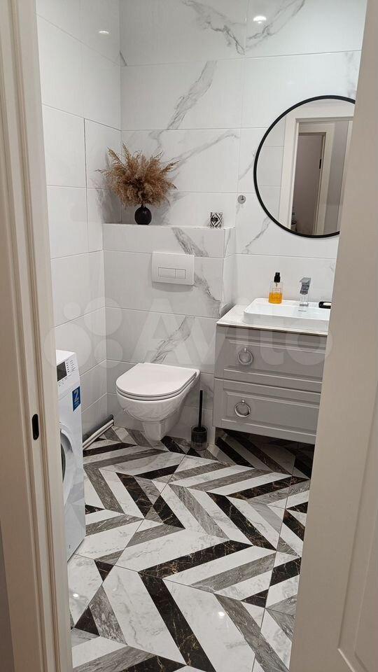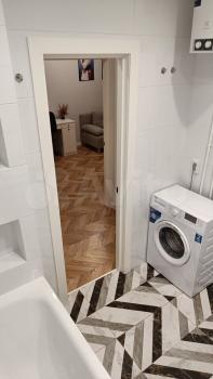 ? Совмещенный санузел с ванной комнатой оформлены в современном стиле, везде абсолютно новая современная сантехника, много места. Есть стиральная машина.