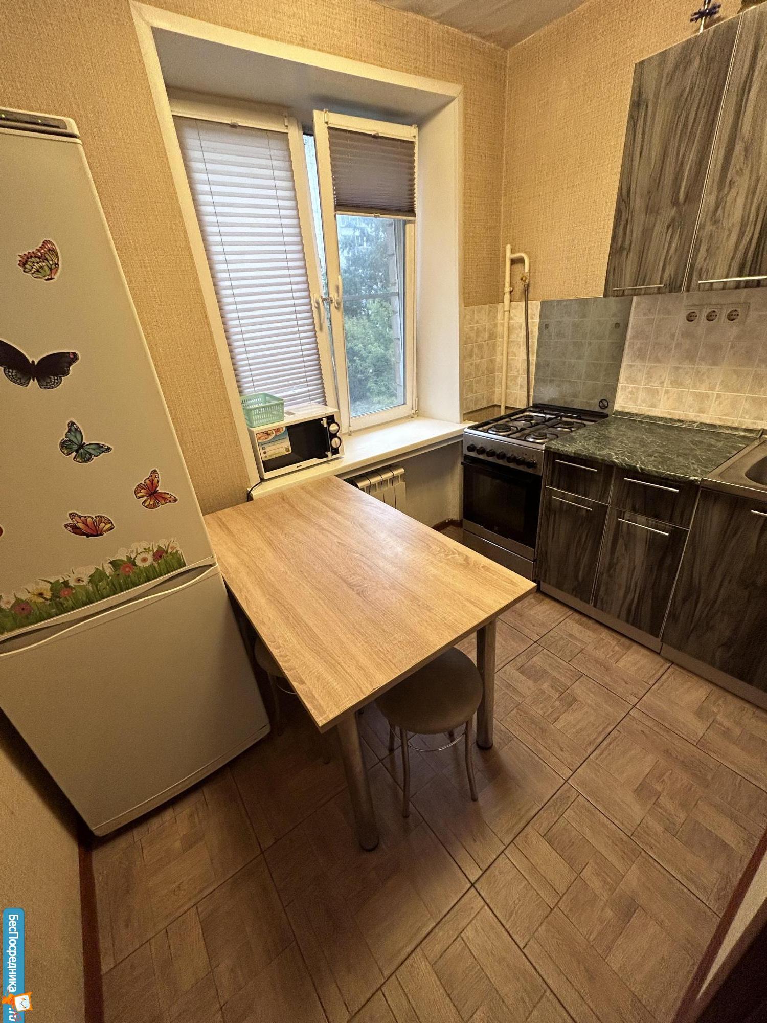 СОБСТВЕННИК. Сдаётся 1 комн квартира, свежий ремонт. 5 этаж, без лифта. Комната: кровать новая, просторный шкаф для одежды, комод, прикроватный столик. Кухня полностью укомплектована: стиральная машина, газовая плита, духовой электрошкаф, вытяжка, холодильник. Санузел смежный. Балкон, зелёный двор (окна во двор, тихо). Бесплатная парковка. Чистый подъезд. Рядом с домом: продуктовые магазины, две остановки общественного транспорта. В самом доме: ВкусВилл, отделение Сбербанка. Цена аренды: 42000 рублей (без учёта ХВС, ГВС и электричества). Залог 1 месяц. Только граждане РФ. Можно с животным. Звонить после 18:00. Собственник. Агентам не беспокоить!