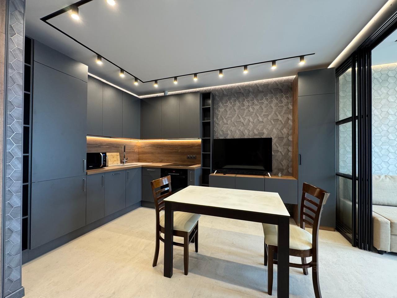 в квартире новая мебель и современная техника.