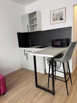 В квартире сделан свежий ремонт, создающий приятную атмосферу для проживания. Пространство студии оборудовано необходимой мебелью, что позволяет сразу заехать и жить без забот. Из окон открывается вид на улицу. Для вашего удобства в квартире есть вся необходимая техника: чайник, варочная панель, холодильник, телевизор, стиральная машина, микроволновая печь. Санузел совмещенный, оборудован современной душевой кабиной.