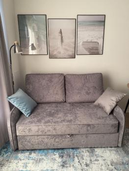 В квартире выделена отдельная зона для работы - просторный письменный стол с креслом и быстрым интернетом. А для отдыха - удобный диван с независимым пружинным блоком, лёжа на котором, можно с комфортом смотреть телевизор 55 дюймов с QLЕD-матрицей.