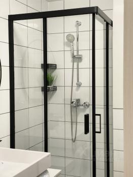 Квартира оформлена в современном стиле, с качественной отделкой. В наличии вся необходимая мебель как на кухне, так и в основной зоне. Из техники есть кондиционер, холодильник, посудомоечная и стиральная машины, а также телевизор. Санузел совмещенный, оборудован душевой кабиной. Окна выходят во двор, что обеспечивает тишину и спокойствие.