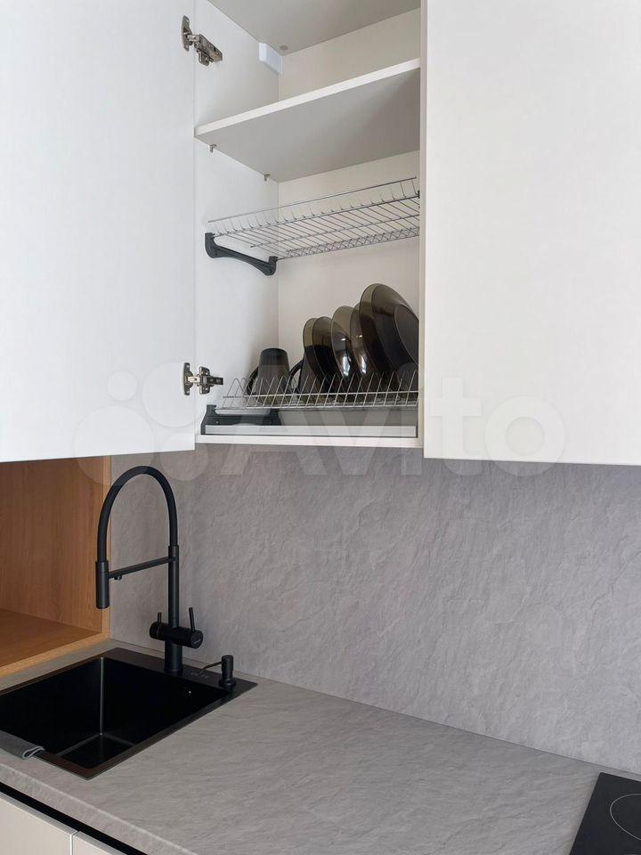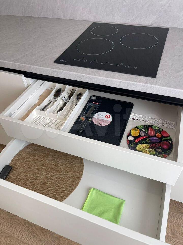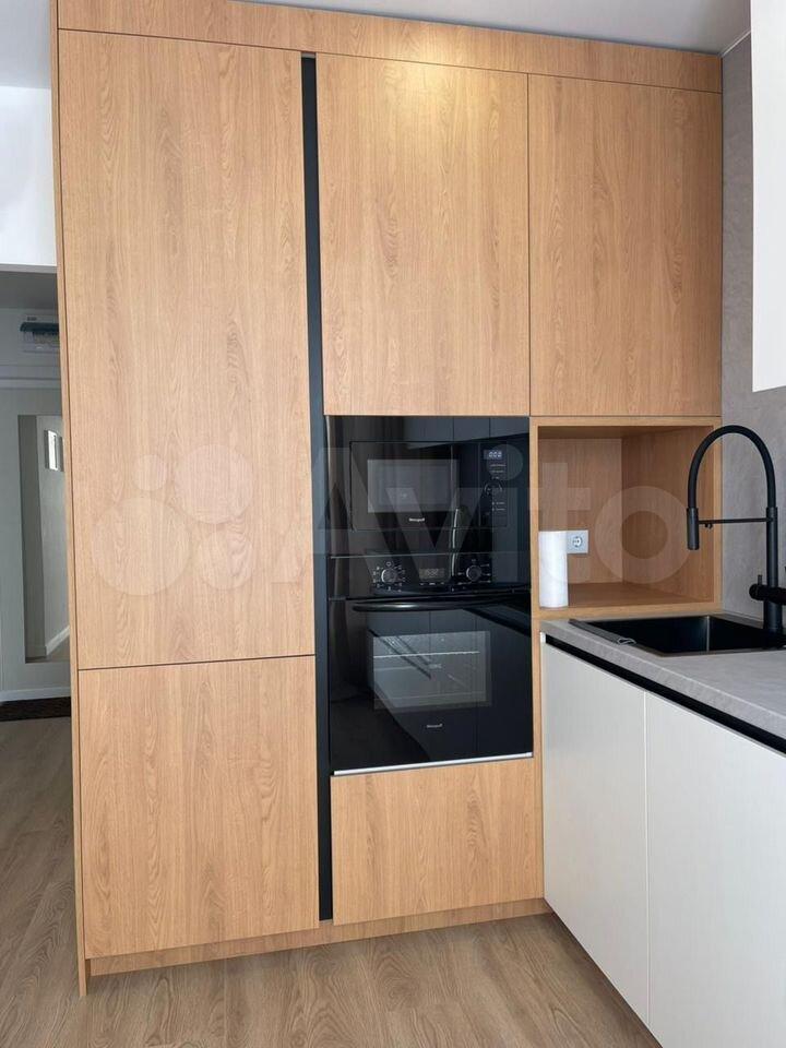 • функциональная кухня с варочной поверхностью, вытяжкой, свч, мойкой и вместительными шкафами;