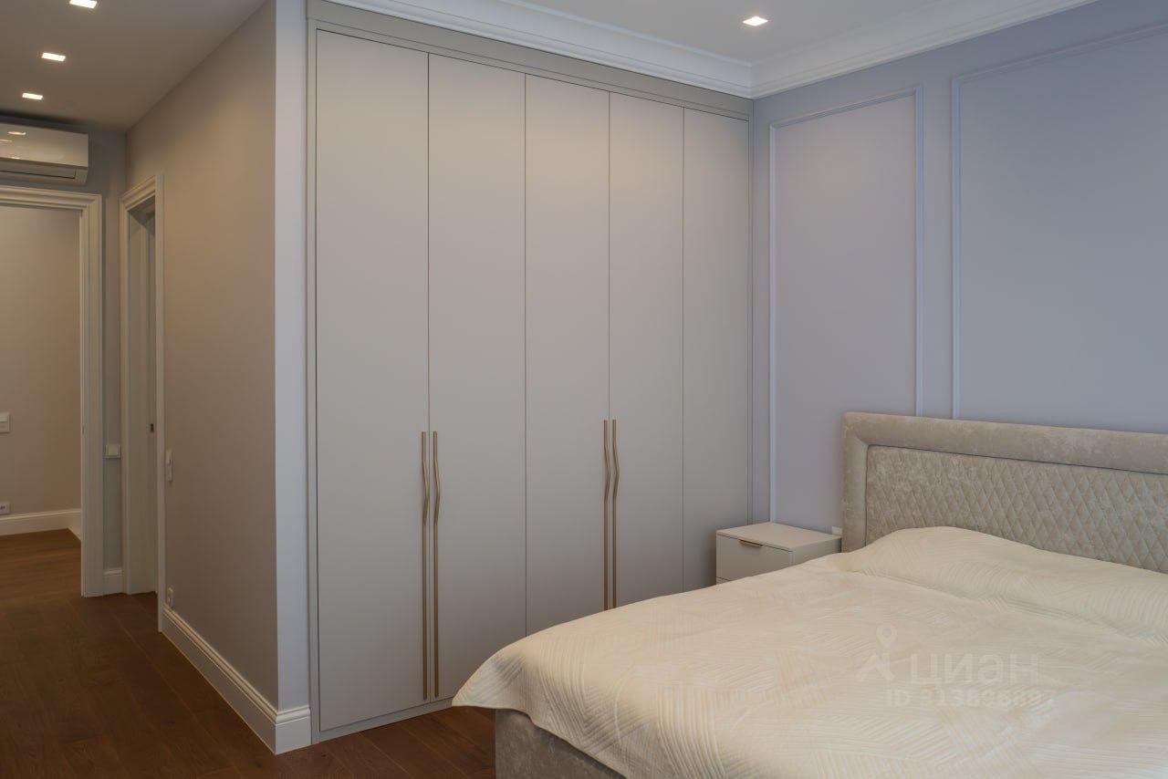 - угловая спальня с двумя окнами оборудована двуспальной кроватью 180*200 и обустроенной гардеробной