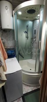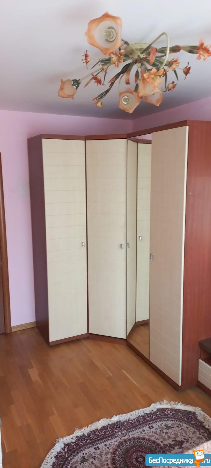 В комнате есть шкаф-купе, компьютерный и обеденный столы, новые кровати. Имеется холодильник, стиральная машина. Комната закрывается на ключ, окна во двор. Свет и вода по счетчикам.
