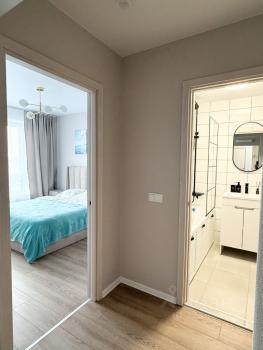 В квартире есть всё для комфортной жизни: современная мебель, стиральная машина, холодильник, микроволновка, духовой шкаф, телевизор, посудомоечная машина, и кондиционеры в каждой комнате. Места для хранения, кровать с подъемным механизмом, кухня с большими полками. Санузел совмещённый, с ванной. Уже подключён интернет — можно сразу работать или учиться из дома.