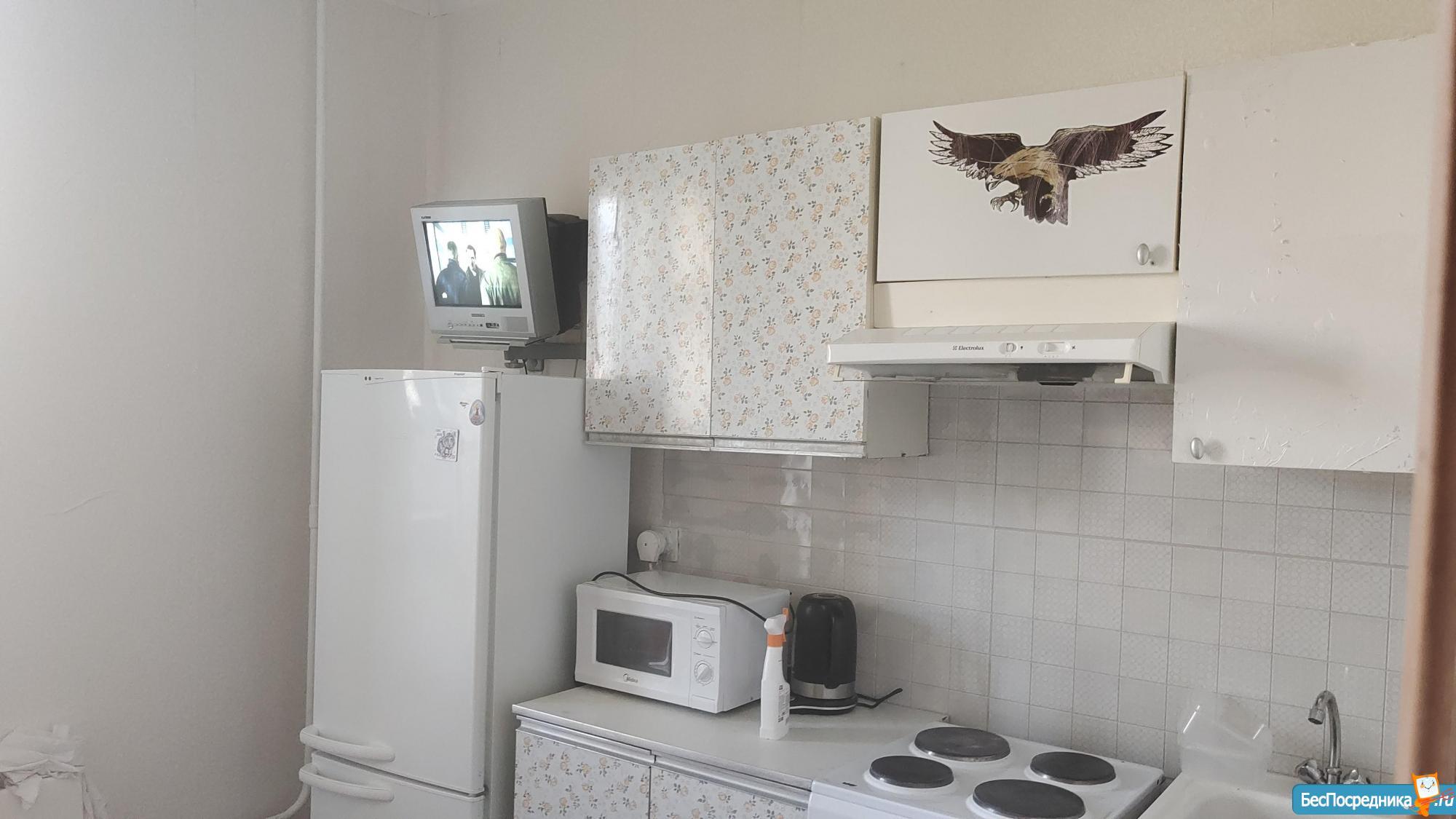 однокомнатная квартира есть мебель , кухня готова к эксплуатации . посуда ,плита ,холодильник . есть стиральная машина .