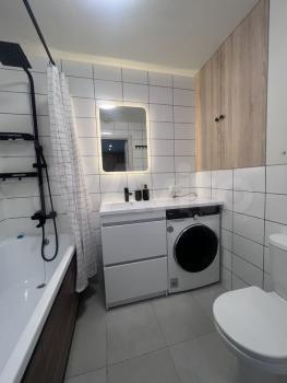 Впервые сдается в долгосрочную аренду (договор на 11 месяцев) квартира в новом, красивом доме 2026 г.постройки. Светлая, современная, просторная квартира от собственника. Оснащена новой мебелью и техникой: холодильник, микроволновая печь, эл.чайник, вытяжка, электроплита, кондиционер, телевизор, стиральная машина, кровать Аскона 140*200 с ПМ, ортопедический матрас Аскона, наматрасник, раскладной диван, стулья, стол, шкаф-пенал, тумба. В квартире имеется оборудованная гардеробная комната.