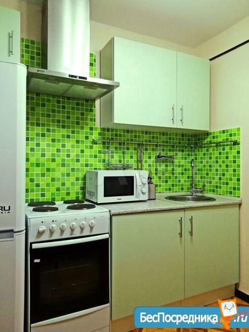 Кухня оснащена плитой, микроволновой печью, капсульной кофе-машиной. Совмещенный санузел. В комнате есть диван раскладывающийся, при необходимости кровать (ширина 140 см) , платяной шкаф, комод. Шкаф-пенал, письменный стол, телевизор. Лоджия 5,5 м (зимнее утепление) можно использовать как зону для чаепития и отдыха.