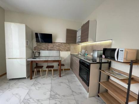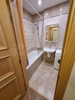Квартира выполнена в стиле евроремонт и полностью готова к проживанию. Здесь есть всё необходимое: мебель на кухне и в комнате, холодильник, телевизор и стиральная машина. В квартире два совмещённых санузла, один из которых оборудован ванной, а другой — душевой кабиной. Высокие потолки 2.7 метра добавляют простора и света.