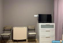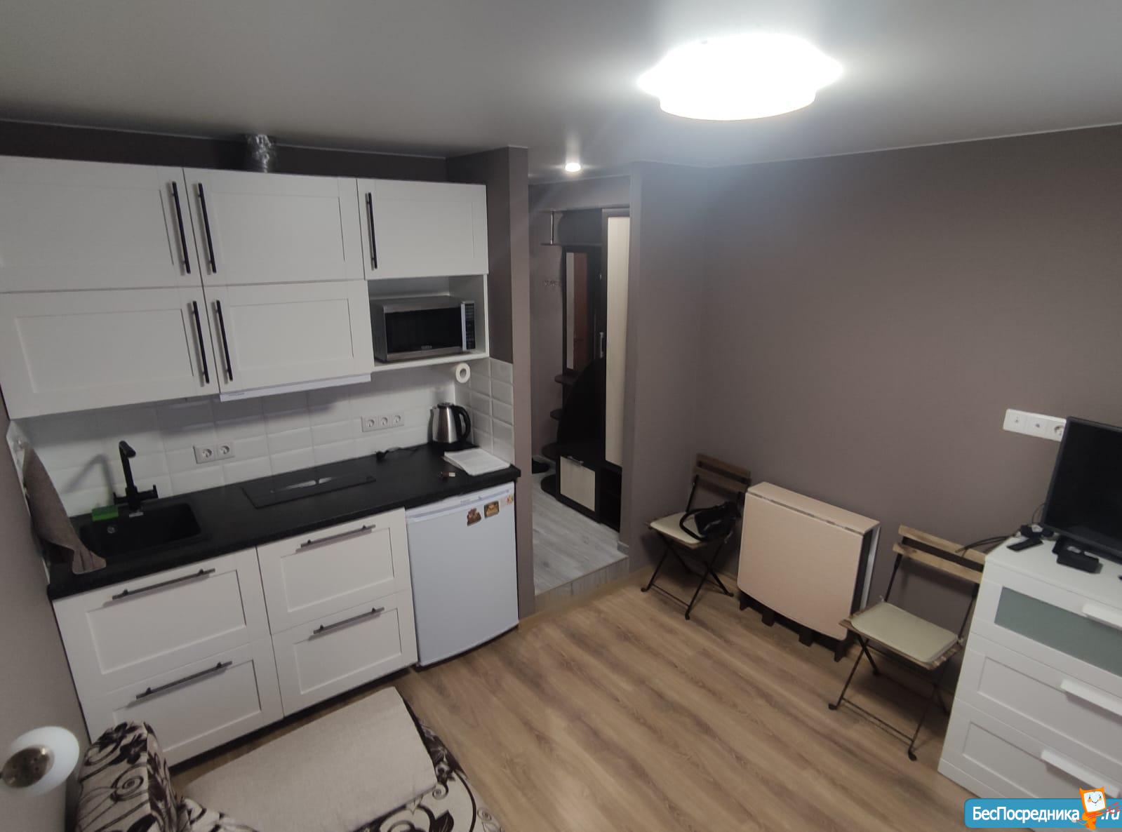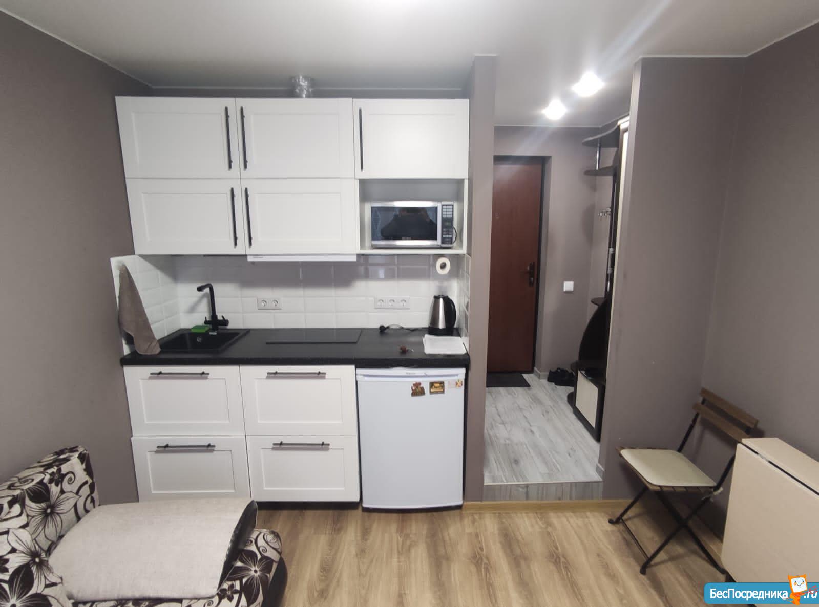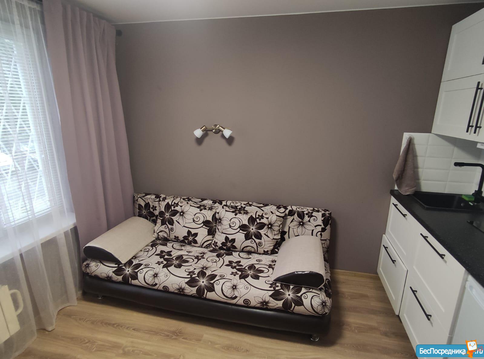 Сдаётся тёплая и уютная студия с евроремонтом на длительный срок от собственника, в 5 минутах от метро Отрадное. В студии имеется вся необходимая мебель и техника! Без посредников. Студия оснащена кухонным гарнитуром, всей необходимой мебелью и бытовой техникой. Есть плита с вытяжкой, телевизор, стиральная машина, микроволновка, чайник и холодильник, шкаф-купе, раскладной диван. Полы — ламинат и плитка. Интернет. Окна выходят во двор.