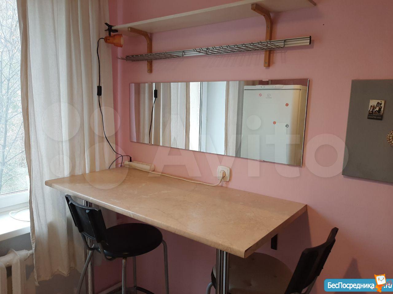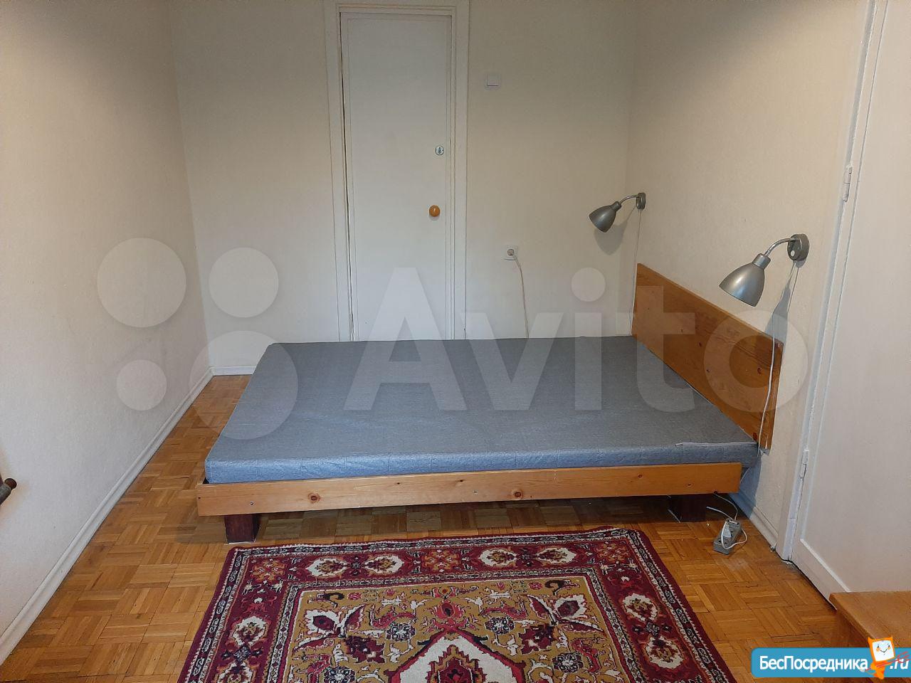Комнаты смежные. Есть вся необходимая мебель для жизни. Холодильник, газовая плита, стиральная машина-автомат. Свежий ремонт санузла с заменой сантехники. В спальне кровать с матрасом. Второе спальное место - раскладной диван в гостиной. Есть балкон. Пластиковые окна во всех комнатах.