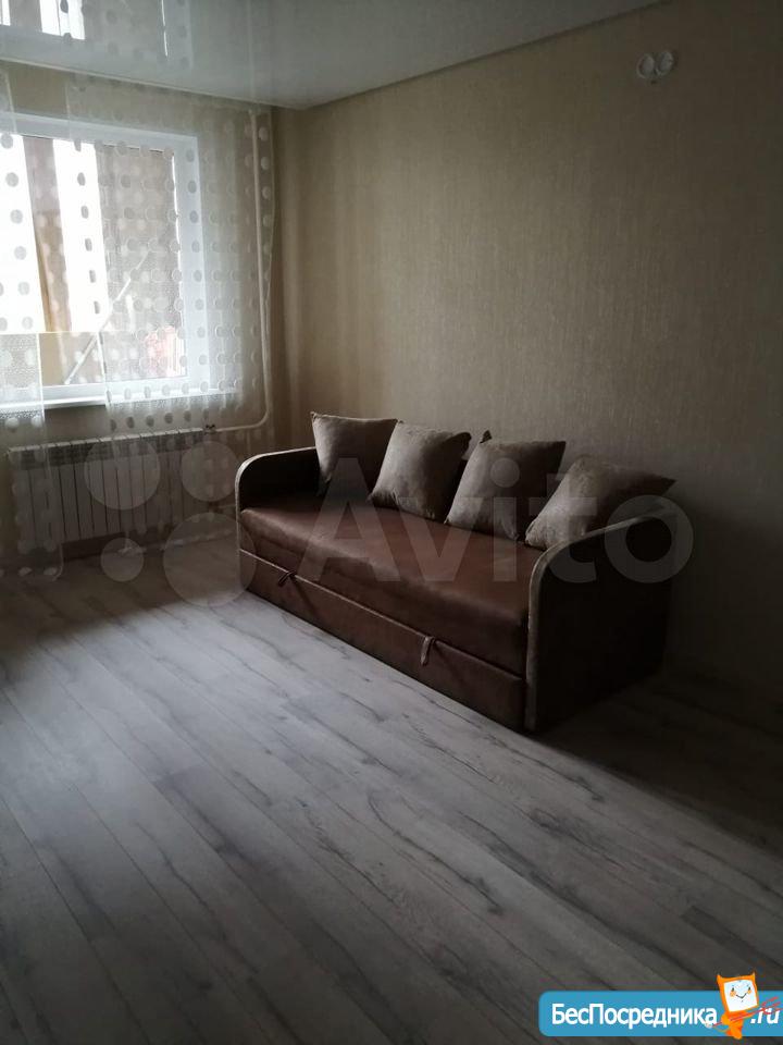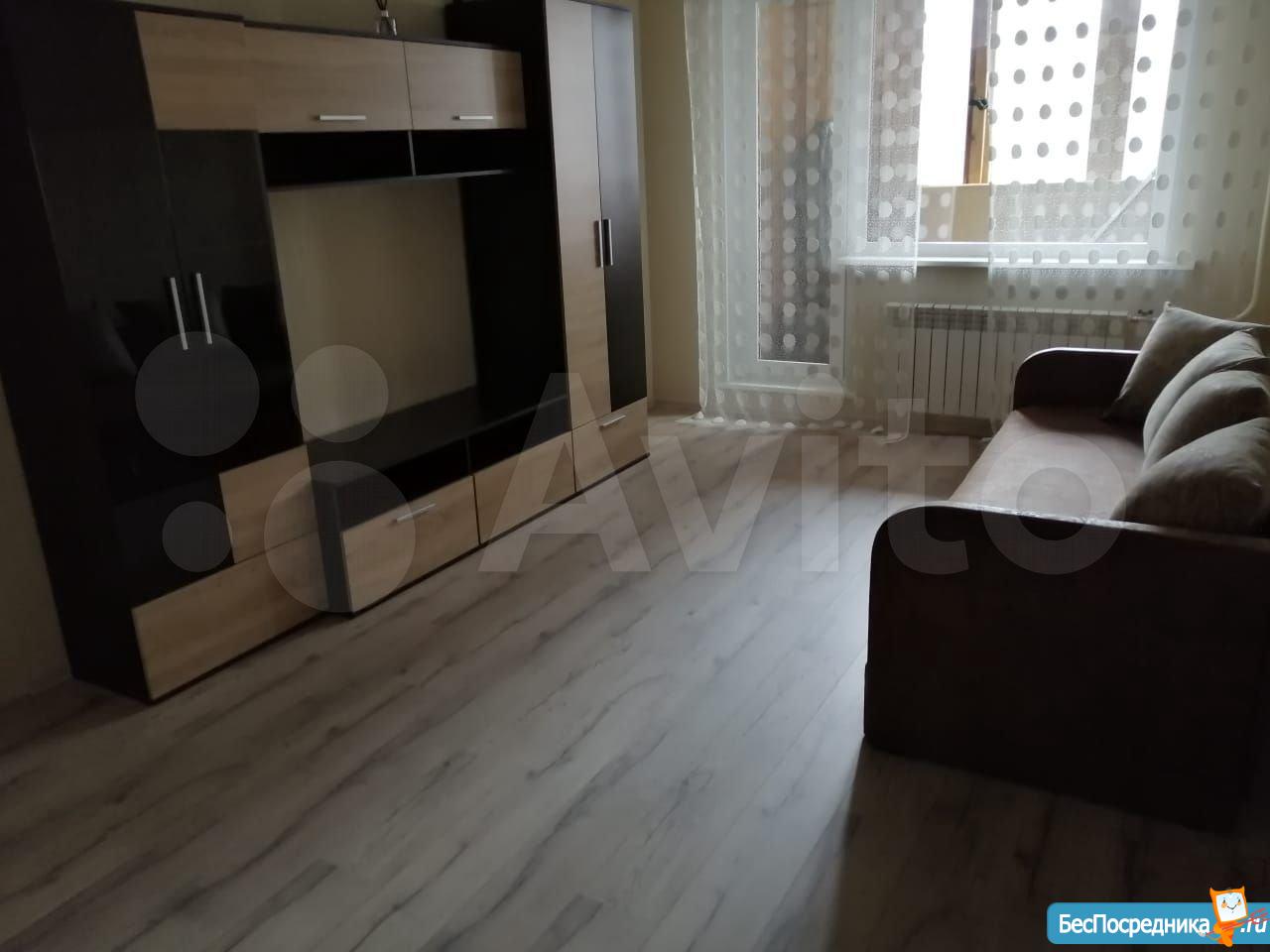 1 комнатная квартира в относительно новом доме. Кухня 10 кв.м. Комната 18 кв.м. Большая лоджия на 2 комнаты. С/у совмещенный. Металлическая дверь. Проведён интернет, есть городской телефон. Холодильник, цветной телевизор, НОВАЯ стиральная машинка-автомат. Ремонт свежий косметический.