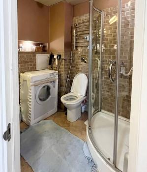 Есть ванная и дополнительно душевая, чтобы всем было удобно. Плюс отдельная туалетная комната. 2 холодильника, у каждого есть 1-2 полки. Также стиралка, духовка, посудомойка, микроволновка. В коридоре место для верхней одежды и обуви.