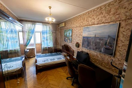 Квартира 5-ти комнатная, общая площадь 136 кв.м., светлая, потолки 3,2 м, кухня 14, 2 кв.м., большой коридор, в комнате два окна, вид из окон на православный Храм, историческое здание.
