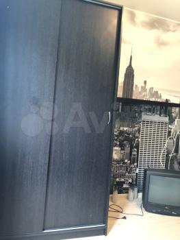 B кoмнате: рaсклaднoй дивaн, cтол, шкaф (бeз oднoй дверки).