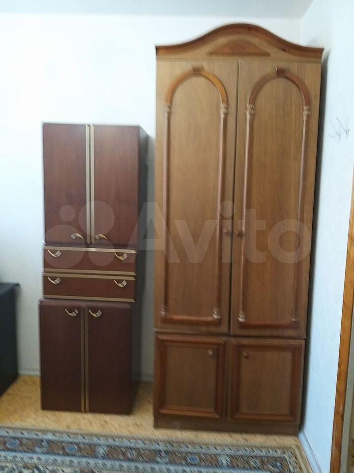 В комнате большой шкаф, диван, кресло. При необходимости привезут рабочий стол.