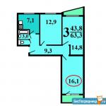 Комната 16,1м в 3-х комнатной квартире на 8 этаже.