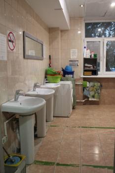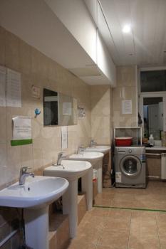 Хостел из двух этажей, на втором этаже живут женщины, на первом -мужчины. На каждом этаже два санузла и два душа.