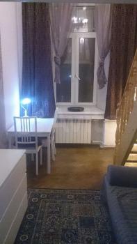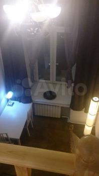 Комната создаёт комфорт и даже простор для проживания одного человека, с высокими потолками и спальным местом на ярусном этаже. Комната расположена уютно в тихой в коммунальной квартире без проживания собственников.
