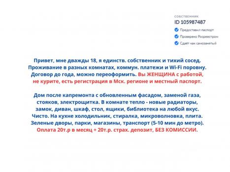 Другие комнаты в Москве без посредников