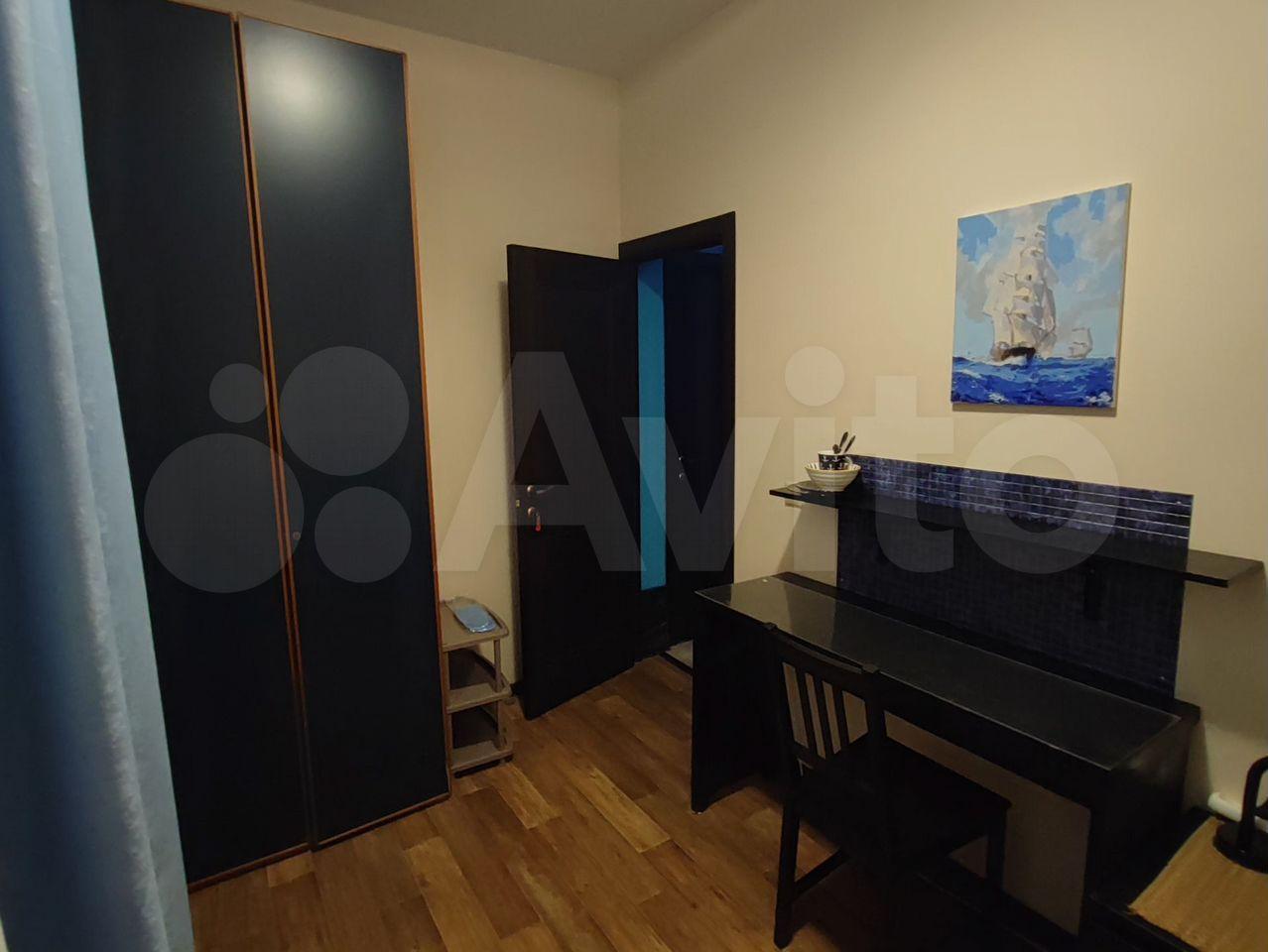В комнате есть диван, рабочий стол, комод для хранения ве...