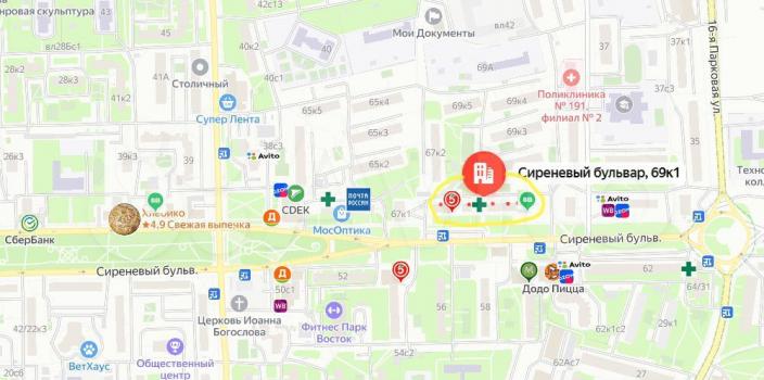 До метро 12-15 минут на автобусе, пешком 30 минут (одинаково до метро Щёлковская и метро Первомайская). Район с развитой инфраструктурой (на 3 фото видно расположение магазинов и др.). Рядом Сиреневый бульвар, Измайловский бульвар, Измайловский лес (12 минут ходьбы).
