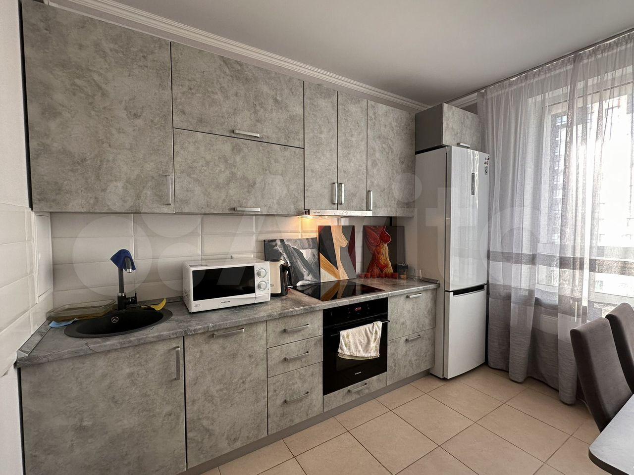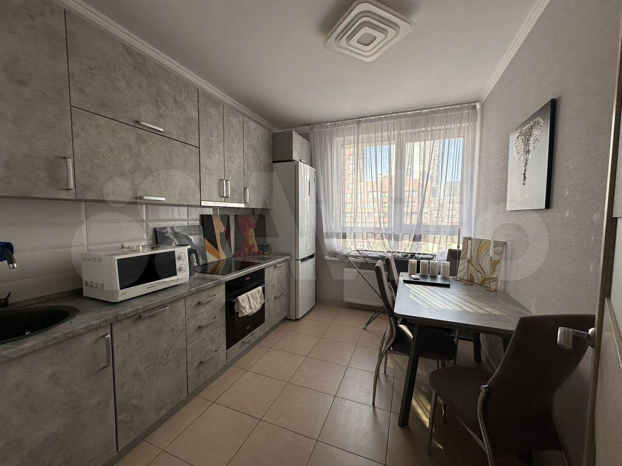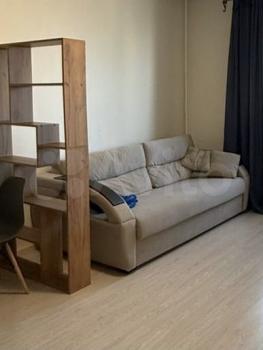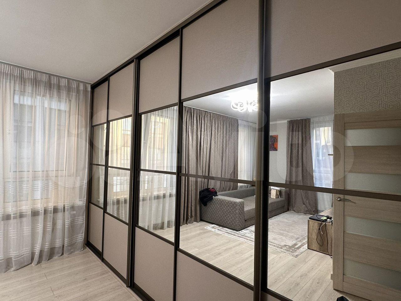 комната после ремонта, есть холодильник, стол, шкаф купе с зеркалом, диван раскладной, гладильная до...
