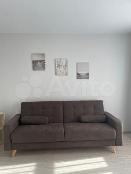большая светлая комната, после ремонта, диван, кресла, станка. Большая кухня....