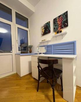 В комнате есть: стол, стул, 2 комода, стеллаж, кровать, полочки, кондиционер, свой отдельный балкон, зеркало, 2 шкафа, ковер, шторы.