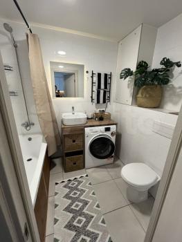 В квартире большой санузел. Установлена ванна, современная сантехника и качественная отделка.