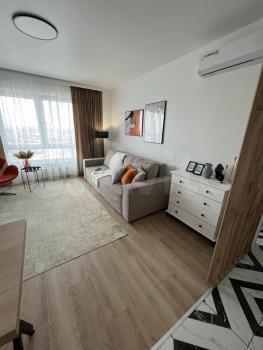 Квартира полностью готова к проживанию и оснащена всей необходимой новой мебелью и техникой: кондиционер, холодильник, посудомоечная и стиральная машины. В кухне и комнате есть современная мебель, а в ванной — удобная ванна. Лоджия с видом на двор станет отличным местом для отдыха. Проведён интернет, поэтому вы всегда будете на связи.