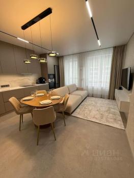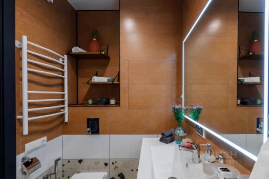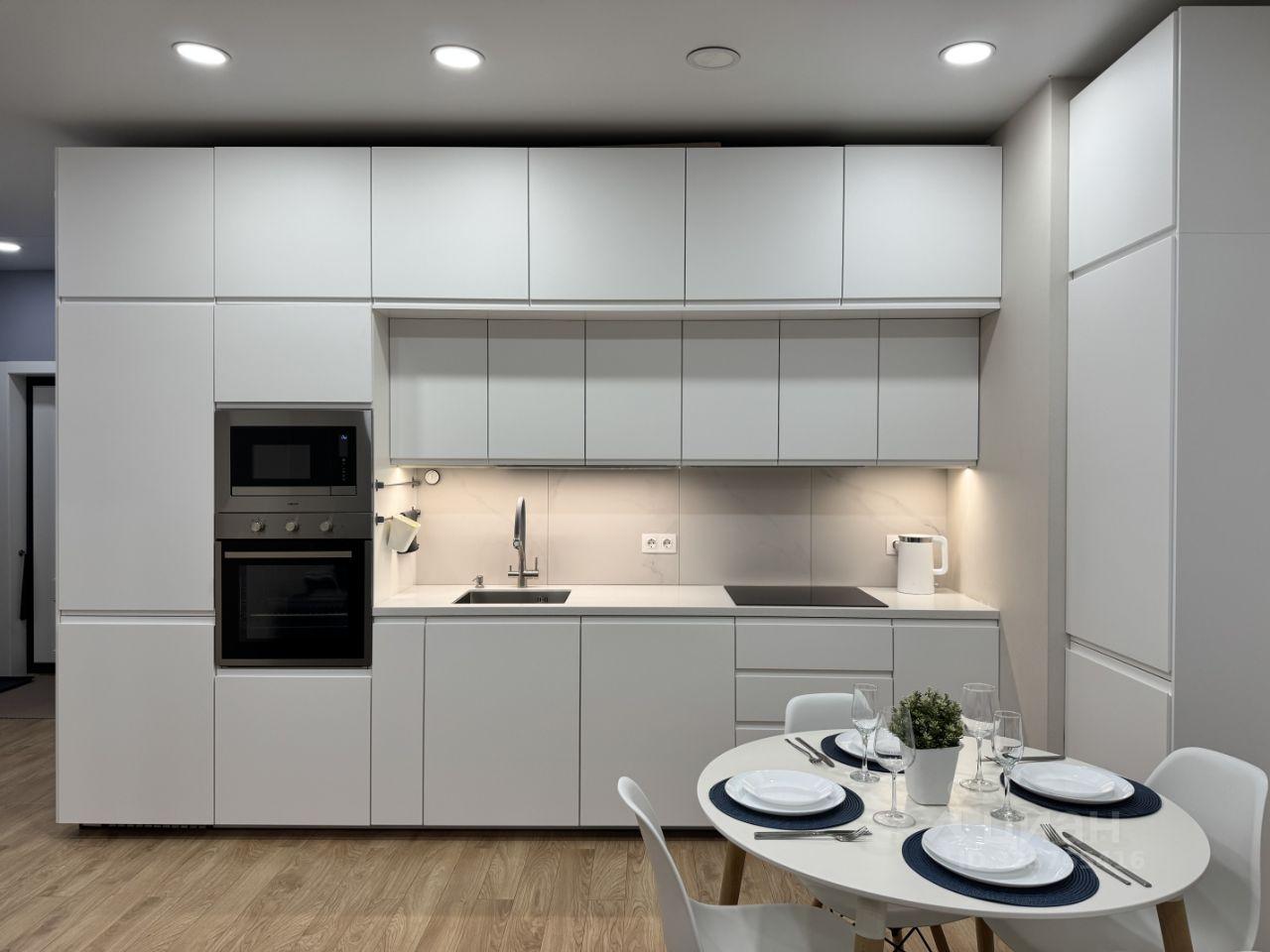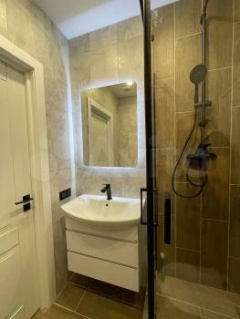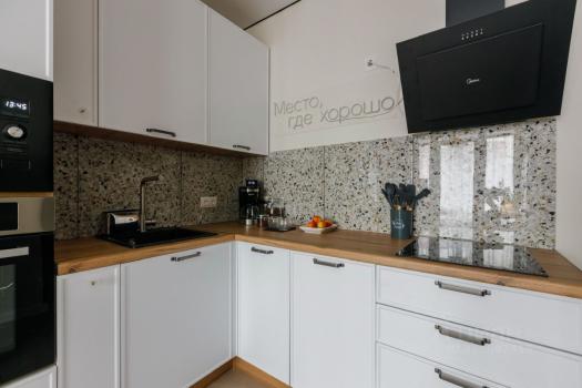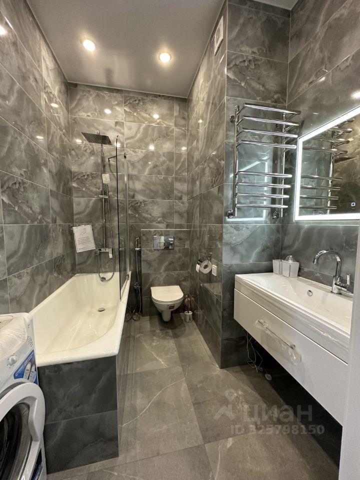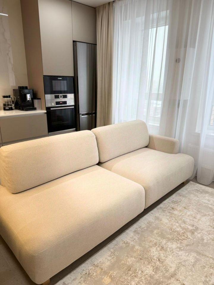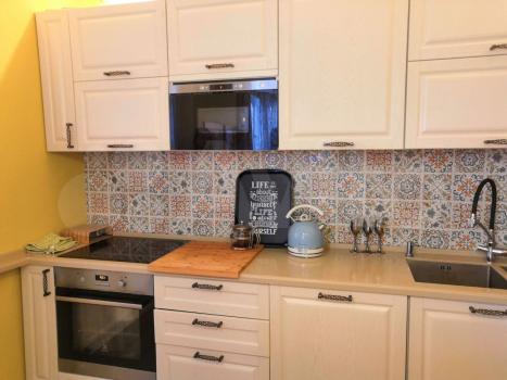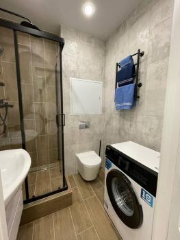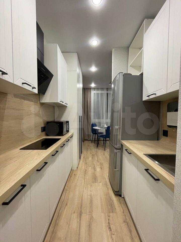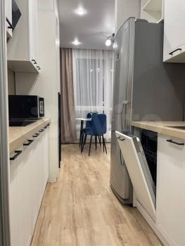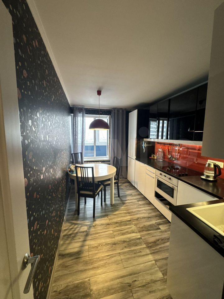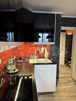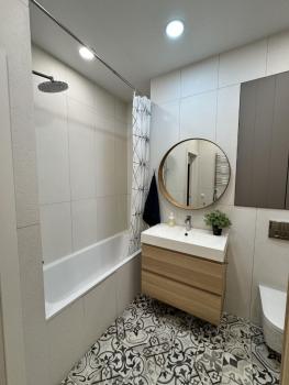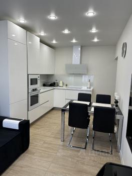 Предлагается к аренде квартира с полностью оборудованной современной кухней: варочная панель, микроволновая печь, посудомоечная машина, холодильник, чайник, тостер, кофемолка и прочая необходимая утварь. В комнате вас ждет комфортная двуспальная кровать с ортопедическим матрасом, функциональное рабочее место с креслом и телевизор. Санузел совмещен, со стиральной машиной с функцией паровой очистки, как в химчистке.