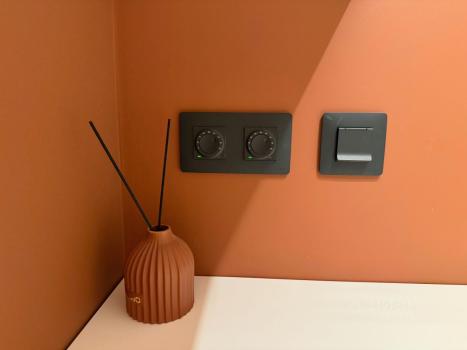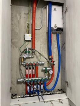 Ремонт делали для себя, без экономии на бытовых вещах. На кухне качественная техника Bosch: индукционная плита, посудомоечная машина, микроволновая печь, установлен фильтр воды с обратным осмосом. Для комфорта в любое время года — два кондиционера и тёплые полы, микроклимат можно настроить под себя. В ванной — стиральная машина с сушкой, гигиенический душ. В спальне — кровать с подъёмным механизмом, хороший ортопедический матрас.