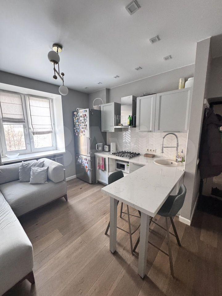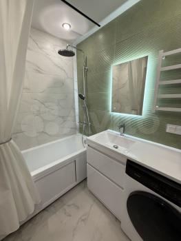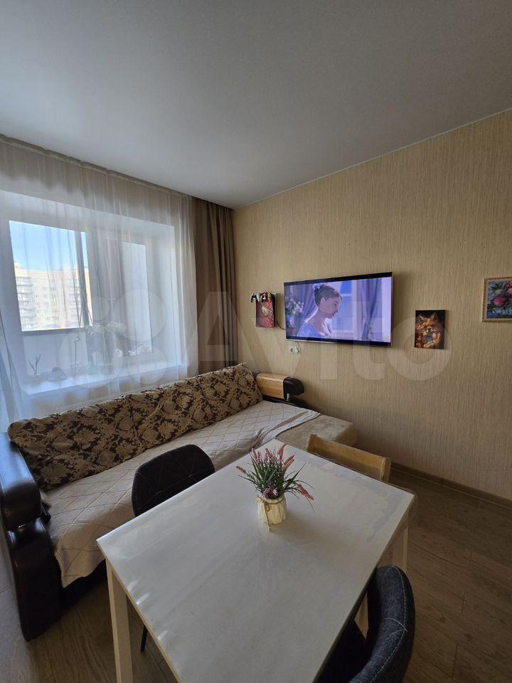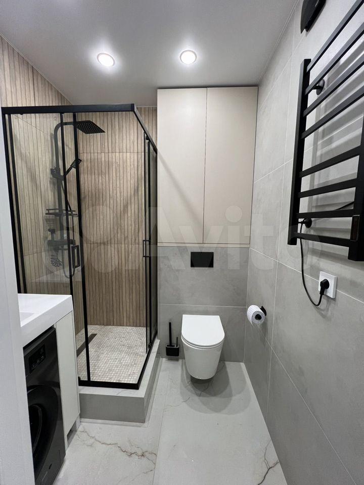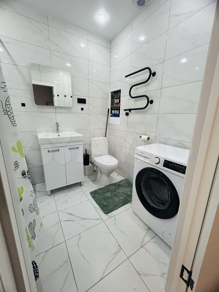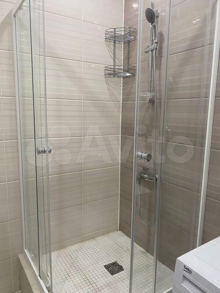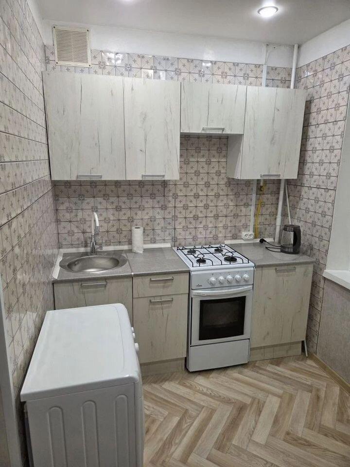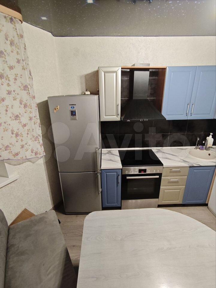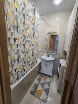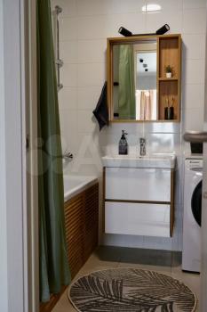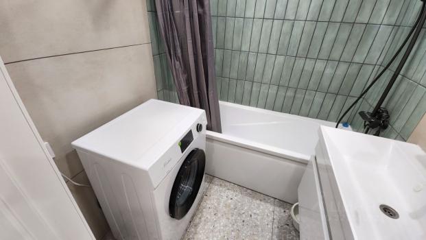 В квартире выполнен косметический ремонт. В комнате и на кухне есть вся необходимая мебель, а также бытовая техника, включая холодильник и стиральную машину. Санузел совмещённый, оборудован душевой кабиной, что особенно удобно для экономии пространства.