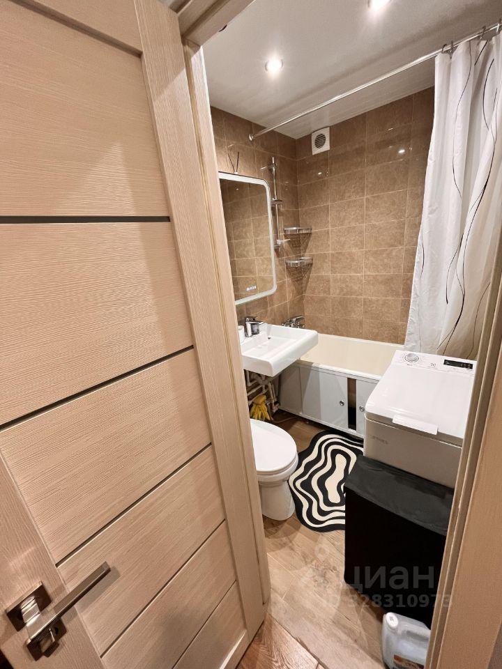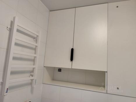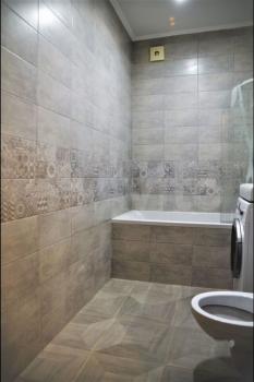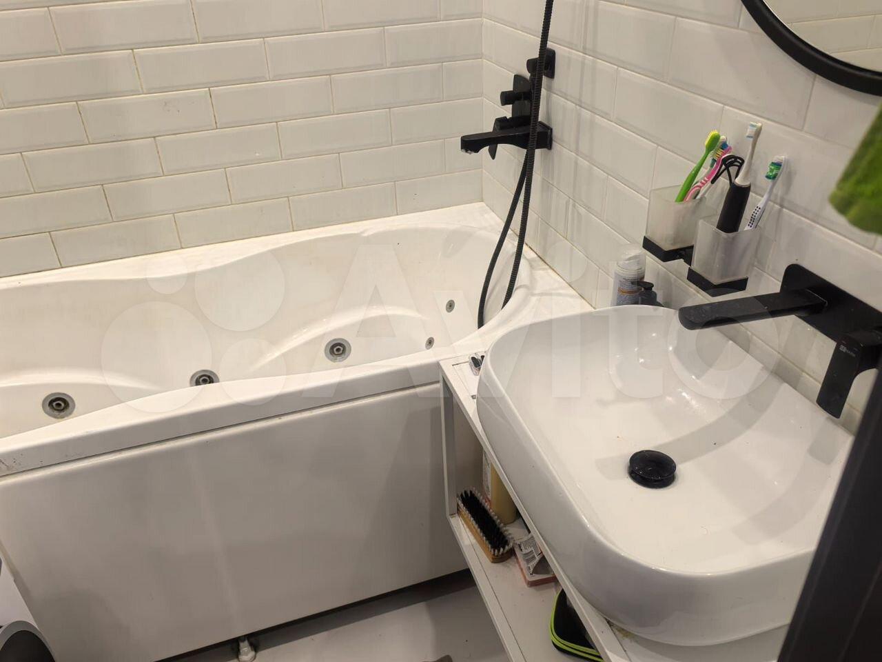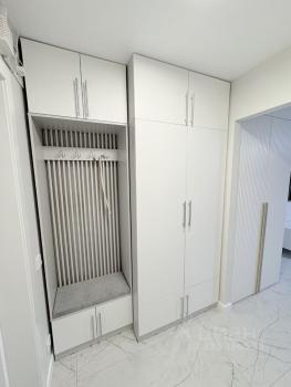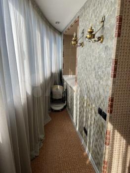 Санузел совмещённый, оформлен плиткой, установлена ванна с гидромассажем. В прихожей есть встроенные шкафы для хранения вещей.