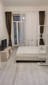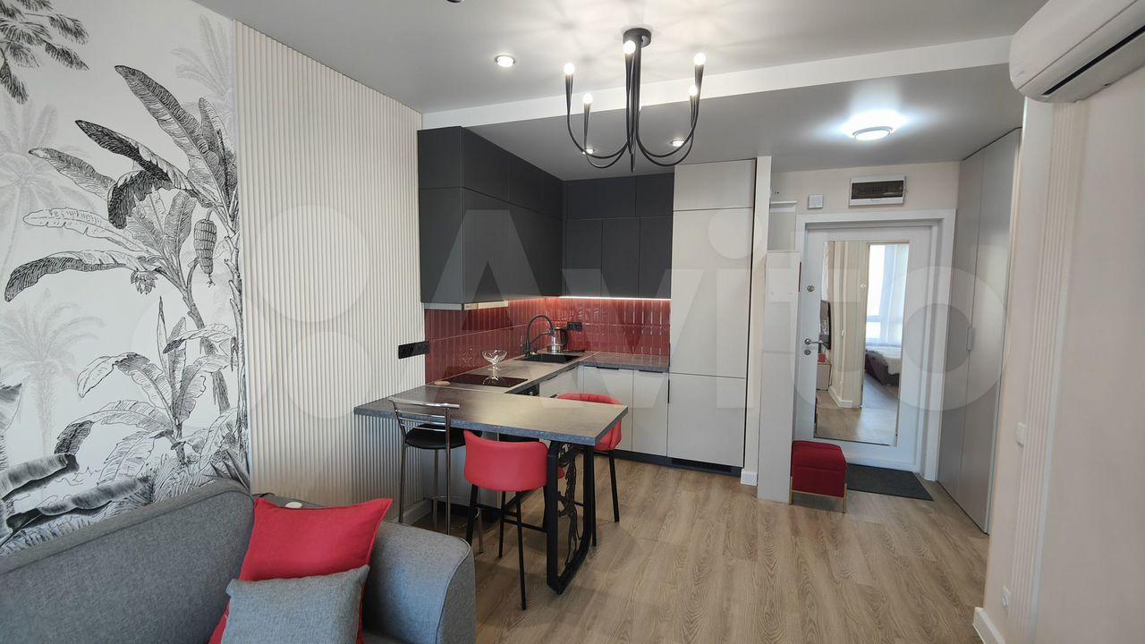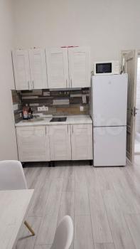 В студии есть все необходимое для заселения, встроенная новая техника на кухне: духовой шкаф, свч, холодильник, посудомоечная машина, посуда, приборы. Аналогично
