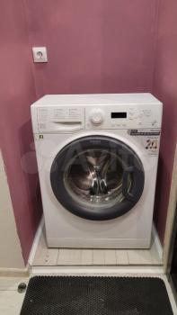 в ванной комнате, стиральная машина, беспроводной пылесос для уборки, отпариватель.