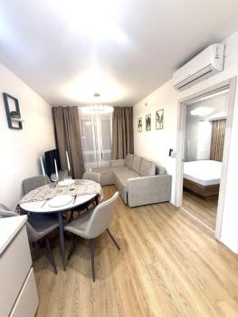 В квартире выполнен качественный дизайнерский ремонт. Квартира полностью меблирована и укомплектована всей необходимой бытовой техникой от ведущих производителей.
