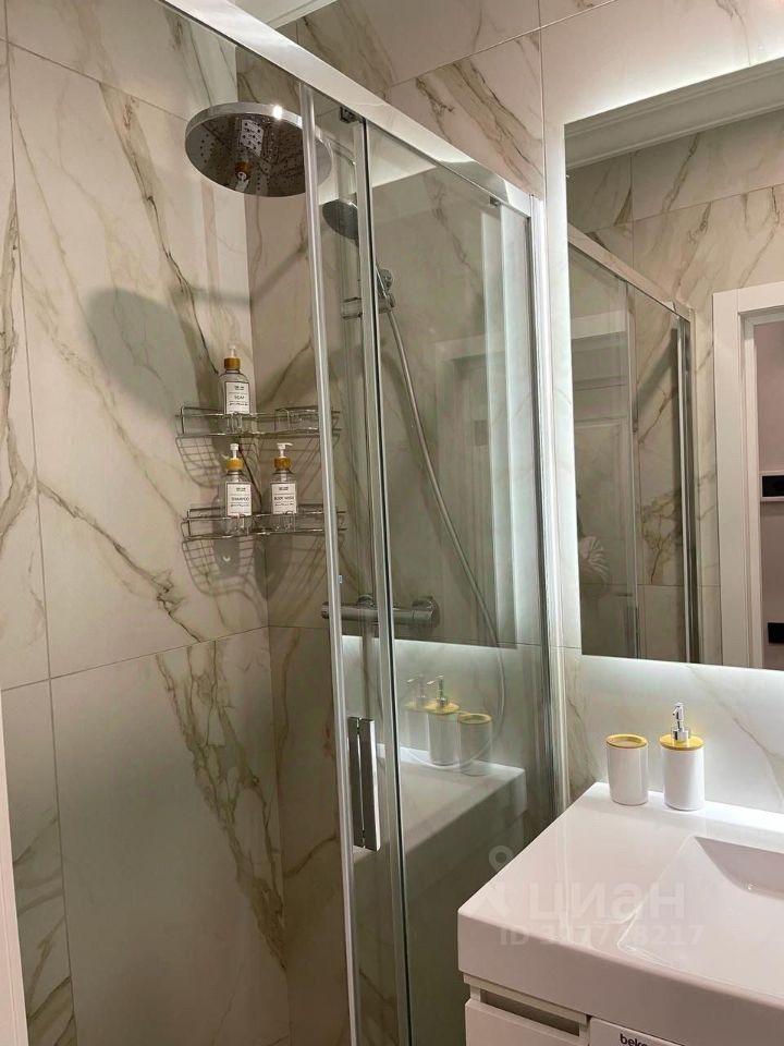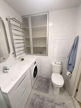 Санузел раздельный, оформлен в светлых тонах и оснащен душевой кабиной. Лоджия застеклена, что позволяет использовать ее как дополнительное пространство. В квартире имеется гардеробная, обеспечивающая достаточно места для одежды и аксессуаров.